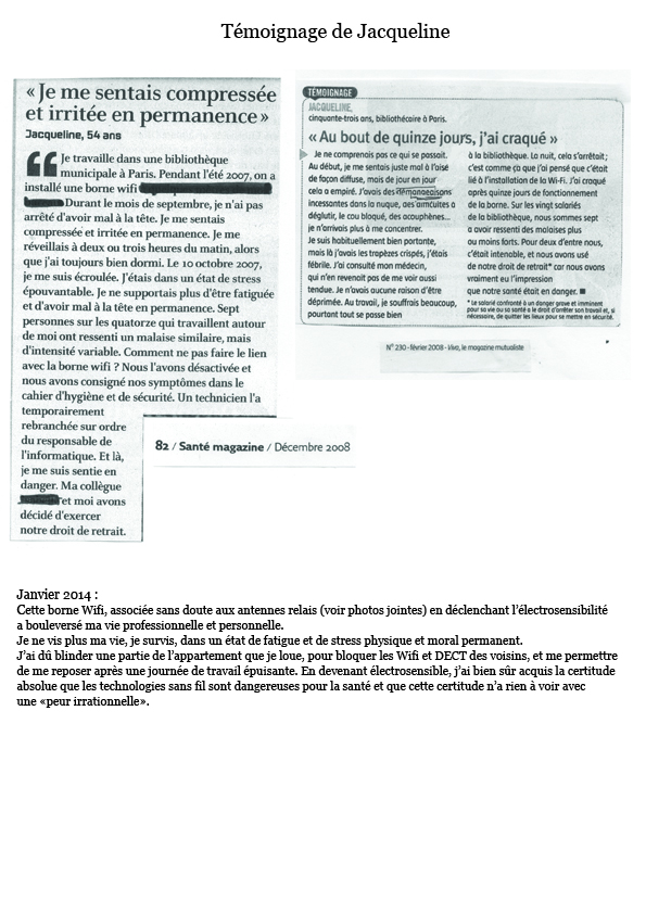 Ils ont agi dans l’intérêt de tous les électrosensibles, et vous ? Merci. Les témoignages sont diffusés avec l'accord des personnes. Ils sont la propriété de leurs propriétaires respectifs.
